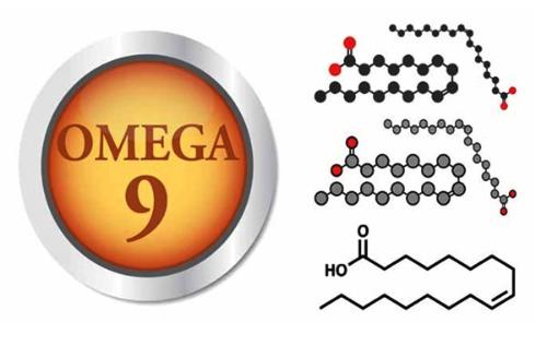 Omega-9 dikenal juga sebagai asam oleat, memiliki jenis asam lemak utama yang dikenal dengan asam oleik yang sangat mudah diperoleh dari makanan kacang-kacangan serta beberapa lemak hewan.